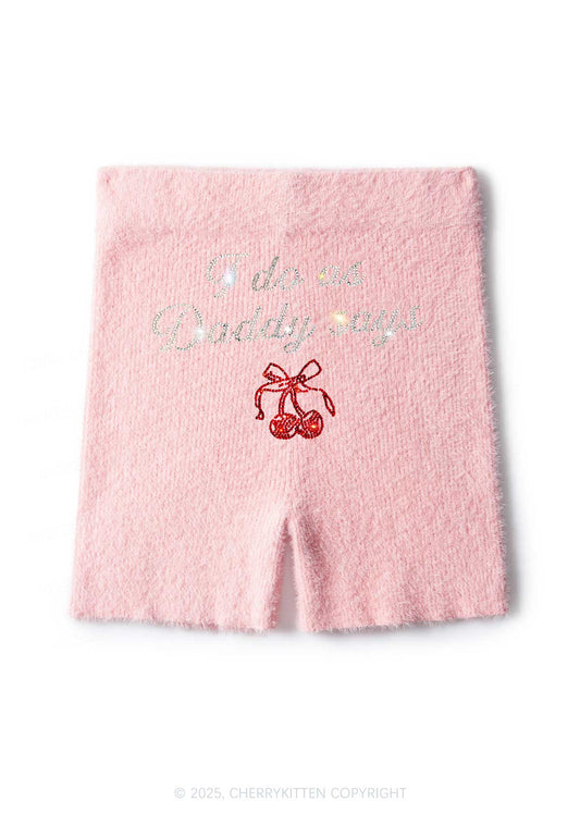 Rhinestone I Do As Daddy Says Y2K Fluffy Shorts Cherrykitten