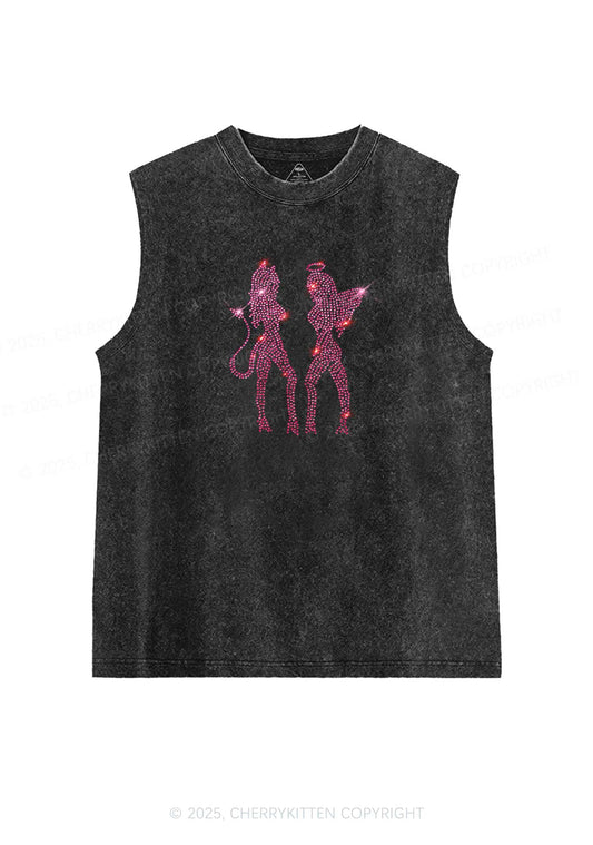 Rhinestone Dancing Girls Y2K Washed Muscle Tank Cherrykitten