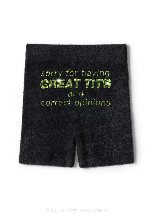 Rhinestone Sorry For Having Correct Opinions Y2K Fluffy Shorts Cherrykitten