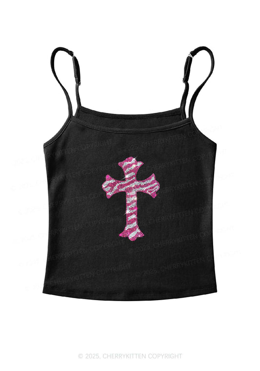 Rhinestone Pink Cross Y2K Spaghetti Strap Cami Cherrykitten