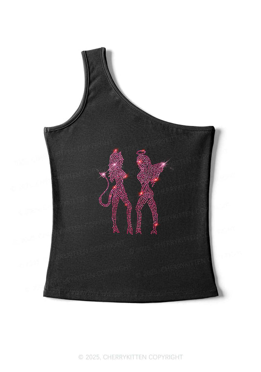 Rhinestone Dancing Girls Y2K One Shoulder Tank Top Cherrykitten