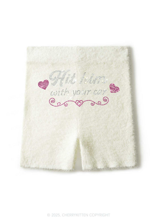 Rhinestone Hit Him Y2K Fluffy Shorts Cherrykitten