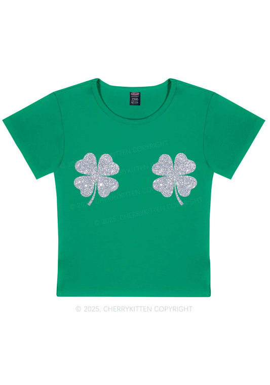 Glitter Four Leaf Clover St Patricks Y2K Baby Tee Cherrykitten