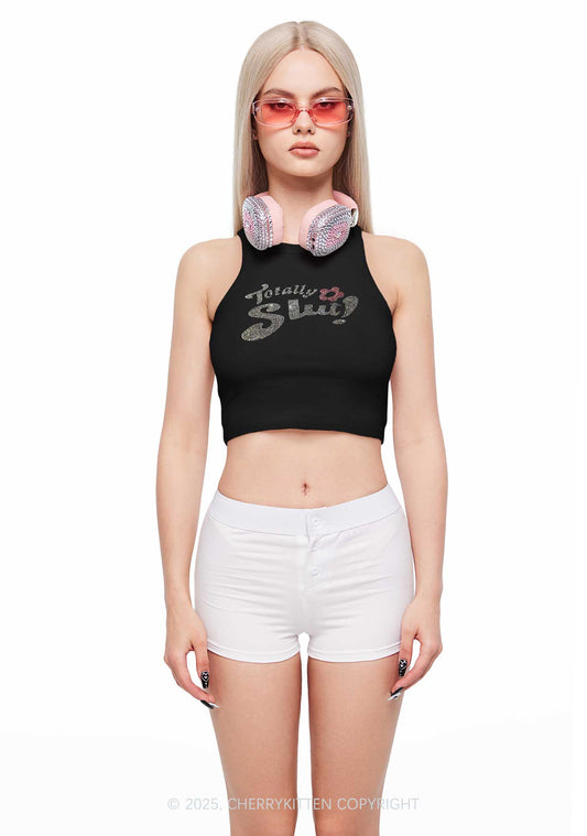 Rhinestone Totally Slxt Y2K Crop Tank Top Cherrykitten