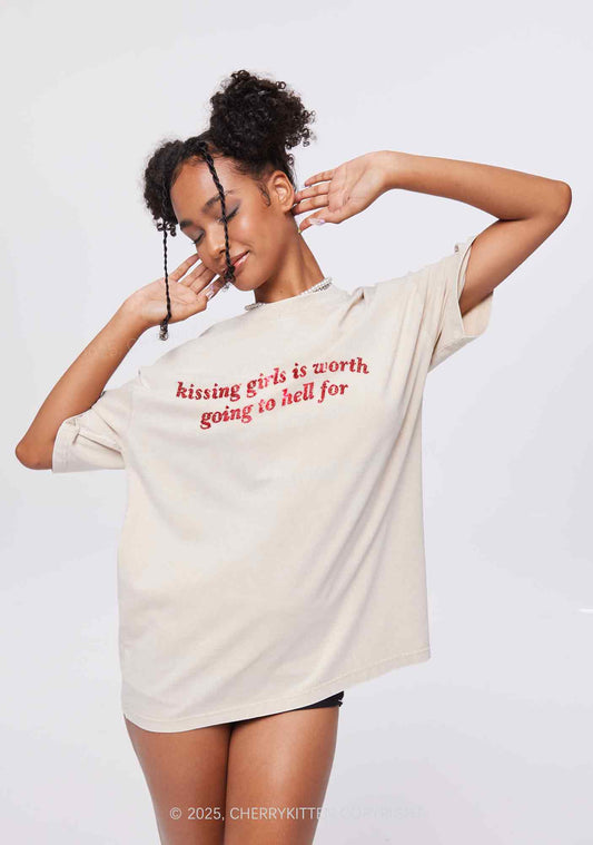 Rhinestone Kissing Girls is Worth Pride Y2K Shirts Washed Tee Cherrykitten