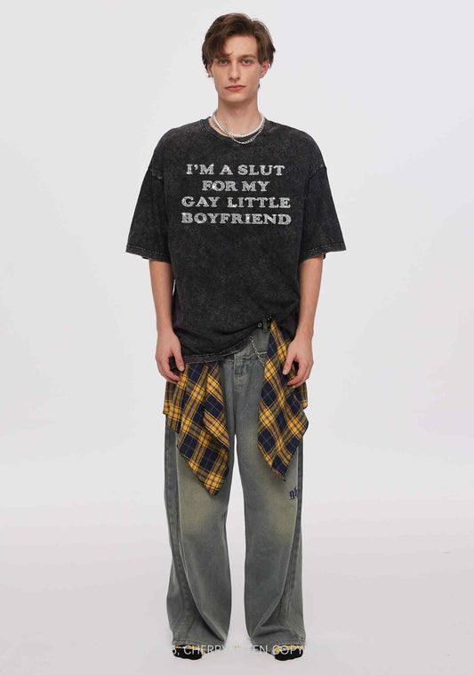 Rhinestone Slxt For My Gay BF Pride Y2K Shirts Washed Tee Cherrykitten