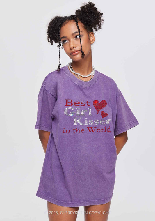 Rhinestone Best Girl Kisser Pride Y2K Shirts Washed Tee Cherrykitten