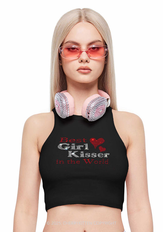 Rhinestone Best Girl Kisser Pride Y2K Crop Tank Top Cherrykitten