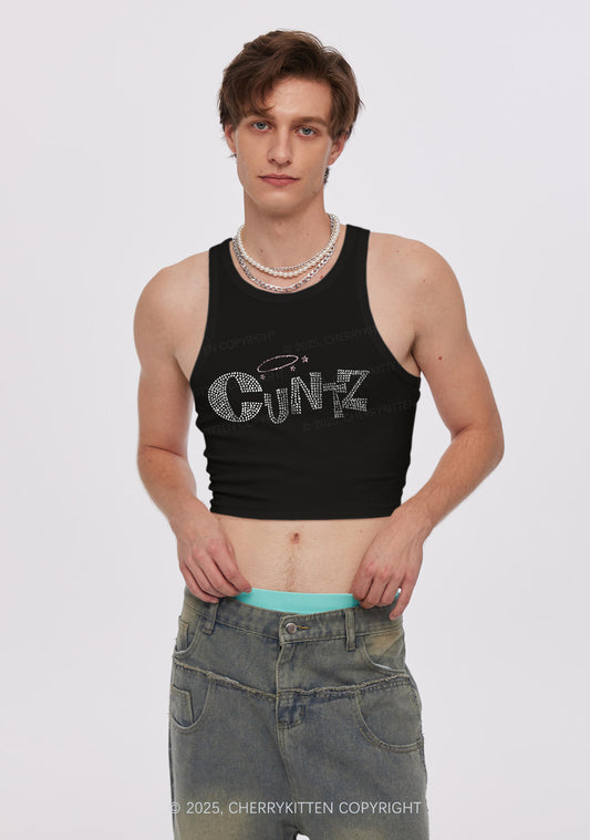 Rhinestone Cxntz Y2K Crop Tank Top Cherrykitten