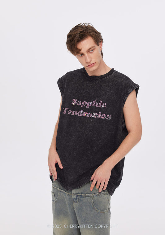 Rhinestone Sapphic Tendencies Pride Y2K Washed Muscle Tank Cherrykitten