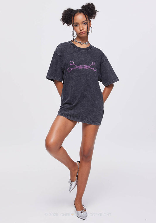 Rhinestone Pink Scissor Pride Y2K Shirts Washed Tee Cherrykitten