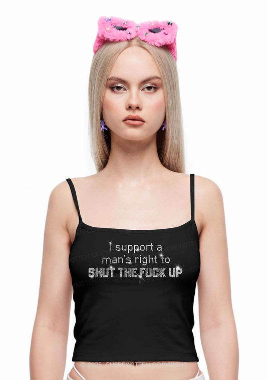 Rhinestone I Support A Mans Right Y2K Spaghetti Strap Cami Cherrykitten