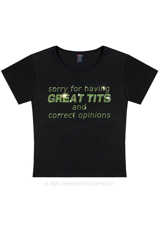 Rhinestone Sorry For Having Correct Opinions Y2K Baby Tee Cherrykitten