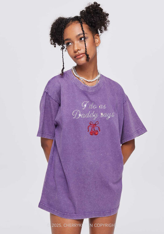 Rhinestone I Do As Daddy Says Y2K Shirts Washed Tee Cherrykitten