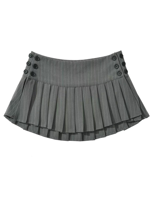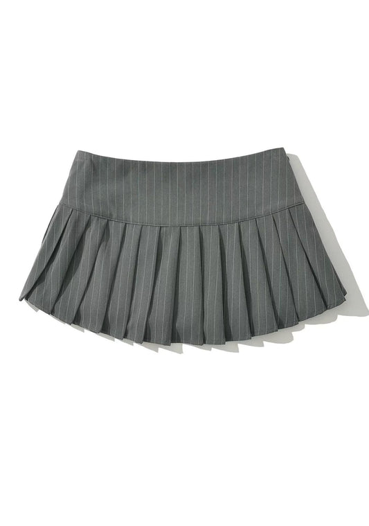 Y2K Gray Striped Low-waist Pleated Skirt Cherrykitten