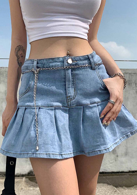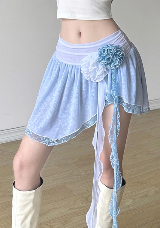 Y2K Light Blue Rose Tassel Irregular Skirt Cherrykitten