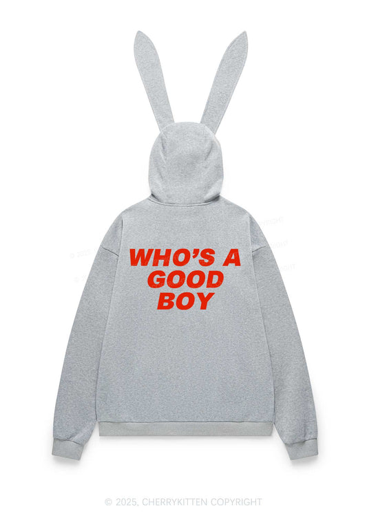 Whos A Good Boy Y2K Bunny Ear Zip Hoodie Cherrykitten