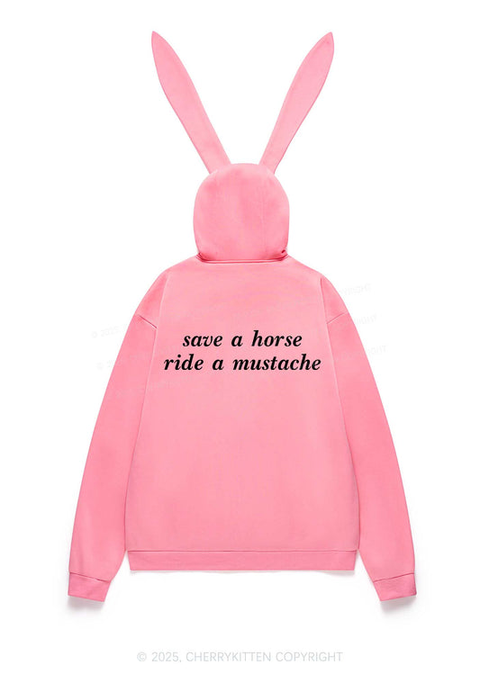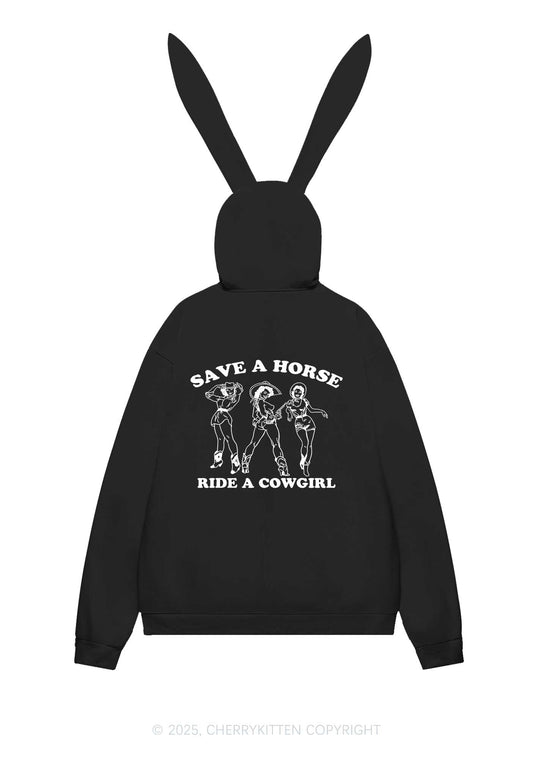 Save Horse Ride DJ Y2K Bunny Ear Zip Hoodie Cherrykitten