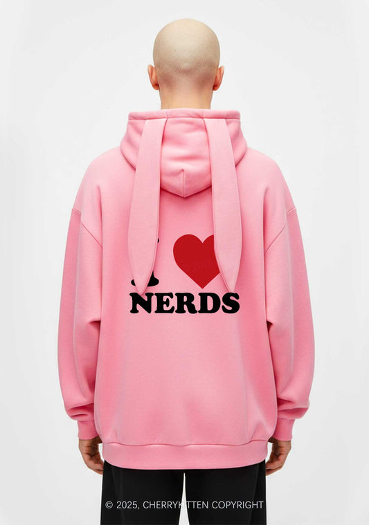 I Love Nerds Y2K Bunny Ear Zip Hoodie Cherrykitten