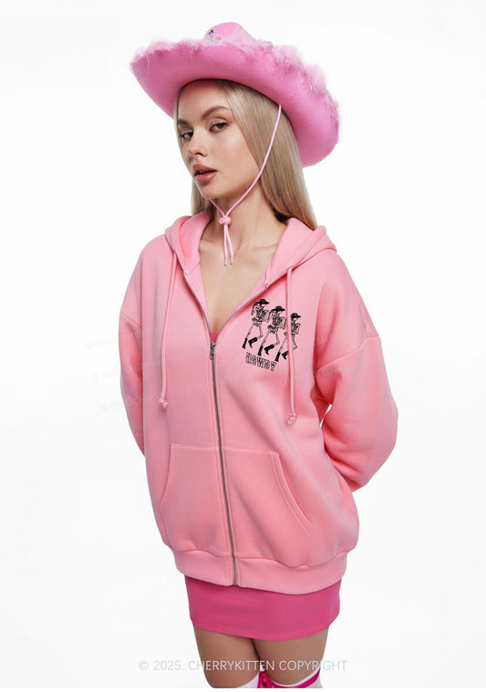 Halloween Howdy Dancing Skeletons Y2K Bunny Ear Zip Hoodie Cherrykitten