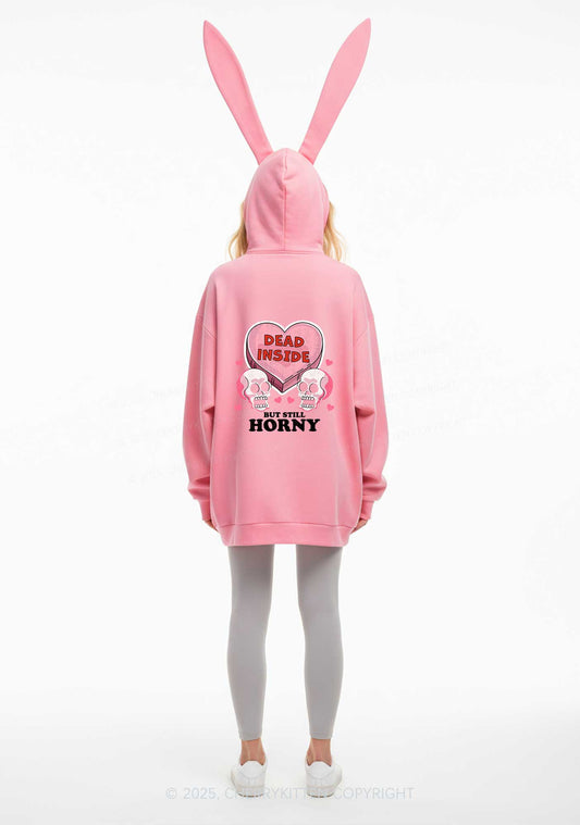 Halloween Dead Inside But Still Horxy Y2K Bunny Ear Zip Hoodie Cherrykitten