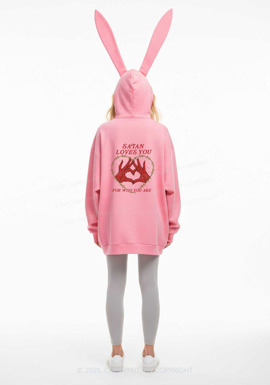 Halloween Satan Loves You Heart Y2K Bunny Ear Zip Hoodie Cherrykitten