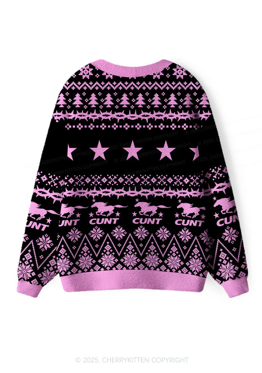Pink Cxxt Stars Y2K Christmas Cardigan Knit Sweatshirt Cherrykitten