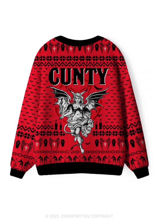 Cunty Satan Y2K Christmas Cardigan Knit Sweatshirt Cherrykitten