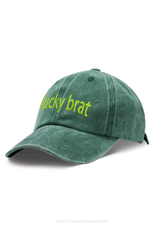 Embroidered Lucky Brat St Patricks Y2K Washed Baseball Cap Cherrykitten