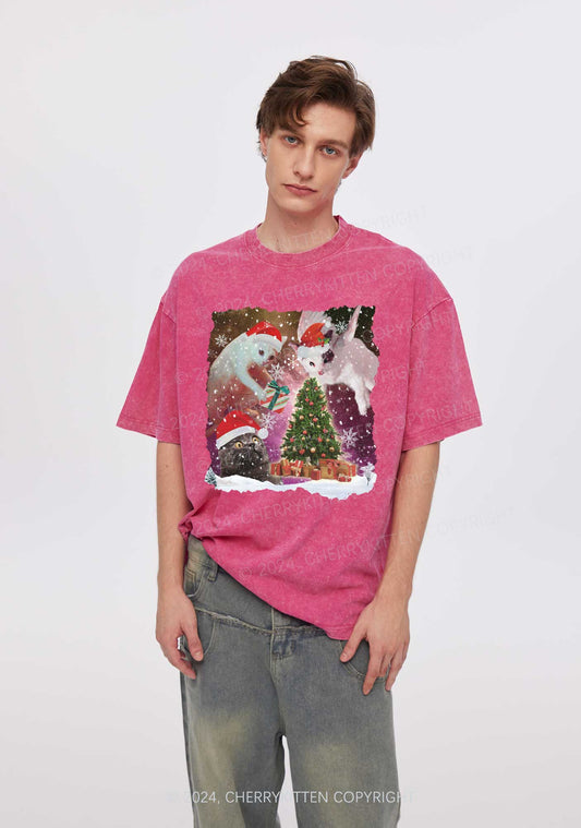 Christmas Cats Gift Y2K Washed Tee Cherrykitten