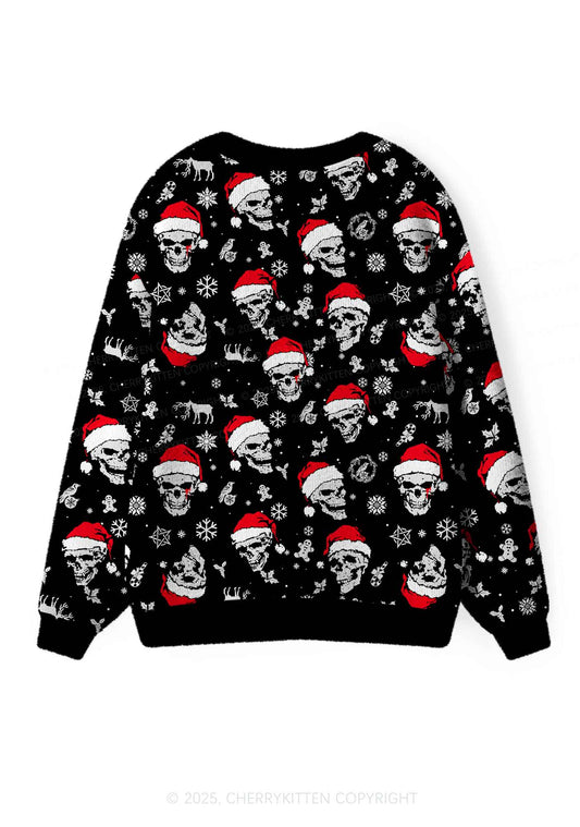 Skull Santa Y2K Christmas Knit Sweatshirt Cherrykitten