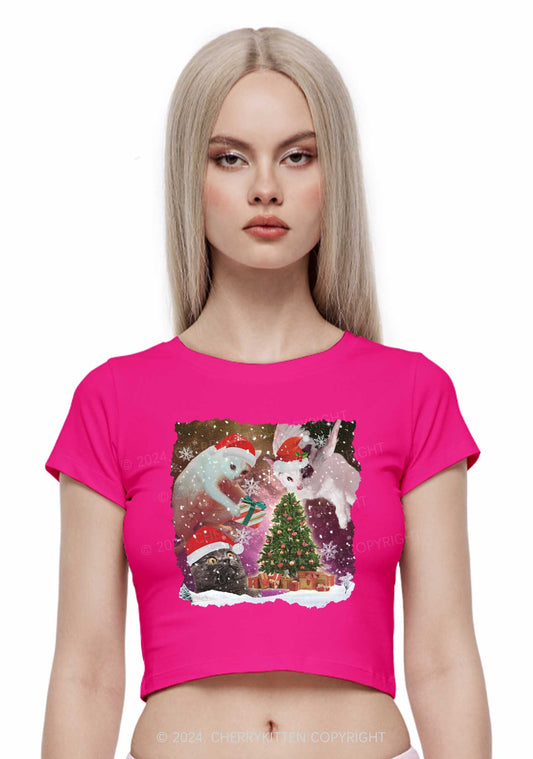 Christmas Cat Mxxf Y2K Baby Tee Cherrykitten