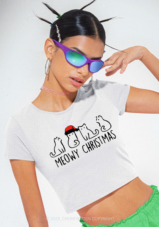 Christmas Meowy Y2K Baby Tee Cherrykitten
