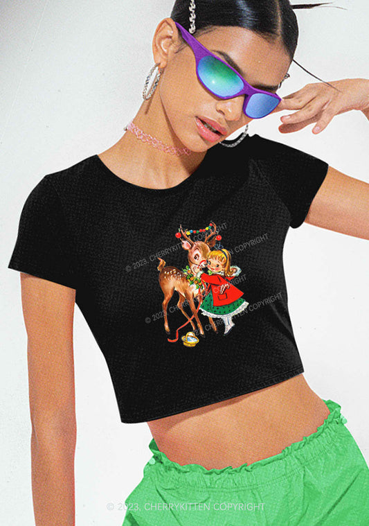 Christmas Girl and Reindeer Y2K Baby Tee Cherrykitten
