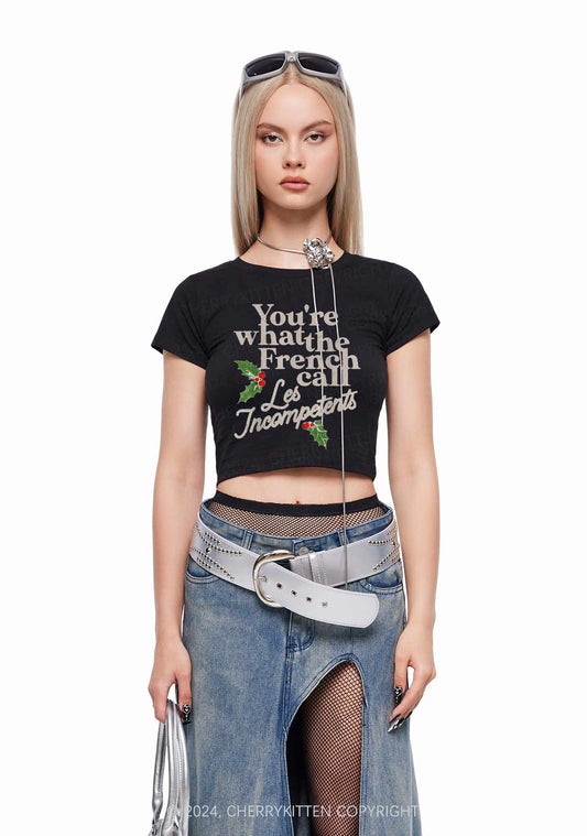 Christmas Les Incompetent Y2K Baby Tee Cherrykitten