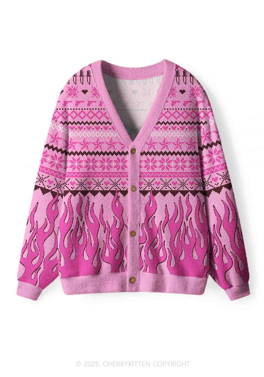 White Cxxt Flame Y2K Christmas Cardigan Knit Sweatshirt Cherrykitten