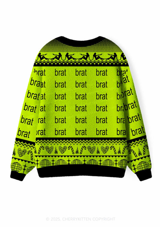Green Brat Y2K Christmas Cardigan Knit Sweatshirt Cherrykitten