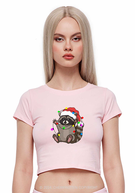 Christmas Raccoon Y2K Baby Tee Cherrykitten