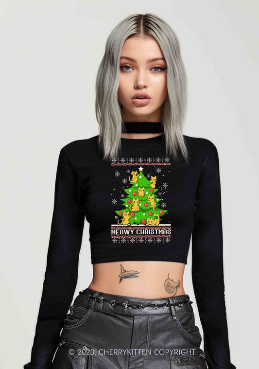 Snowflake Meowy Christmas Tree Y2K Long Sleeve Crop Top Cherrykitten
