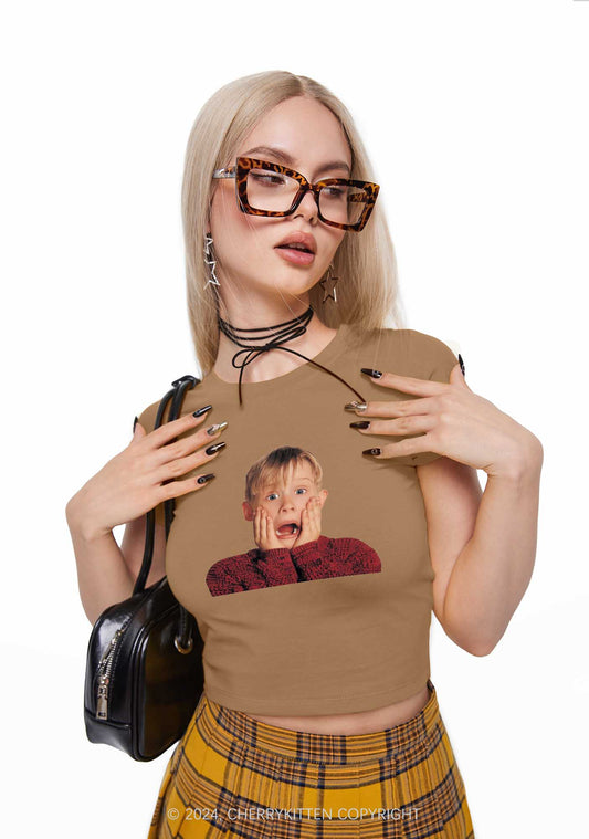 Christmas Home Alone Boy Y2K Baby Tee Cherrykitten