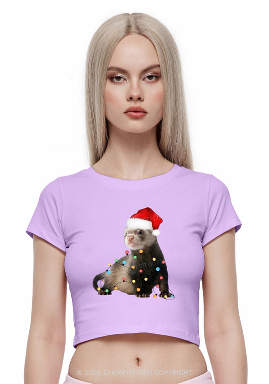 Christmas Ferret Lights Y2K Baby Tee Cherrykitten