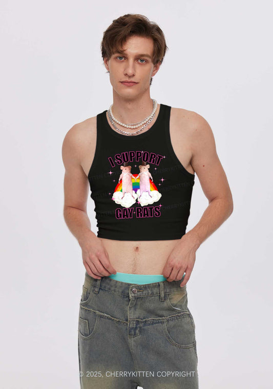 Support Gay Rats Pride Y2K Crop Tank Top Cherrykitten