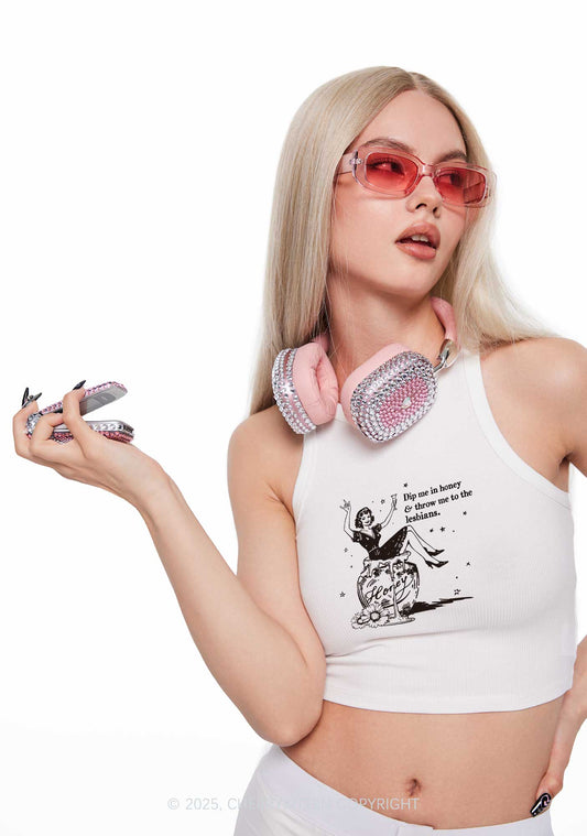 Throw Me To The Lesbians Pride Y2K Crop Tank Top Cherrykitten