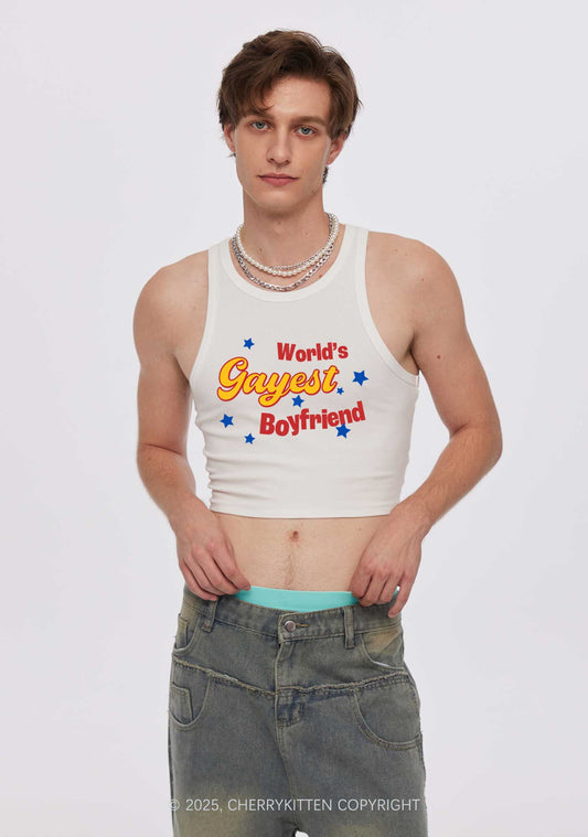 Worlds Gayest Boyfriend Pride Y2K Crop Tank Top Cherrykitten