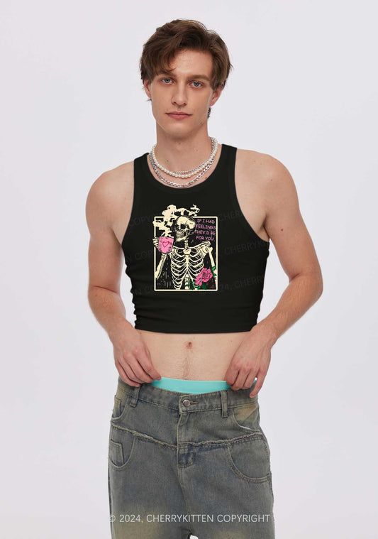 Skeleton Had Feelings Y2K Valentine's Day Crop Tank Top Cherrykitten