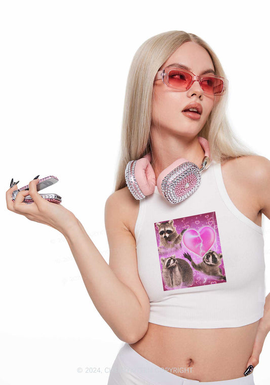 Pink Heart Raccoon Y2K Valentine's Day Crop Tank Top Cherrykitten