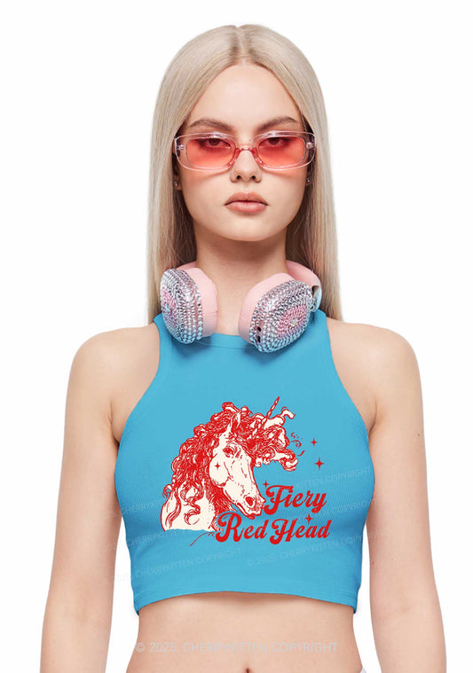 Fiery Red Head Y2K Crop Tank Top Cherrykitten