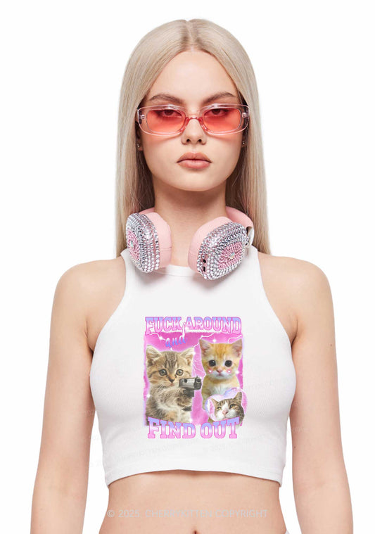 Fxxk Around Cats Y2K Crop Tank Top Cherrykitten