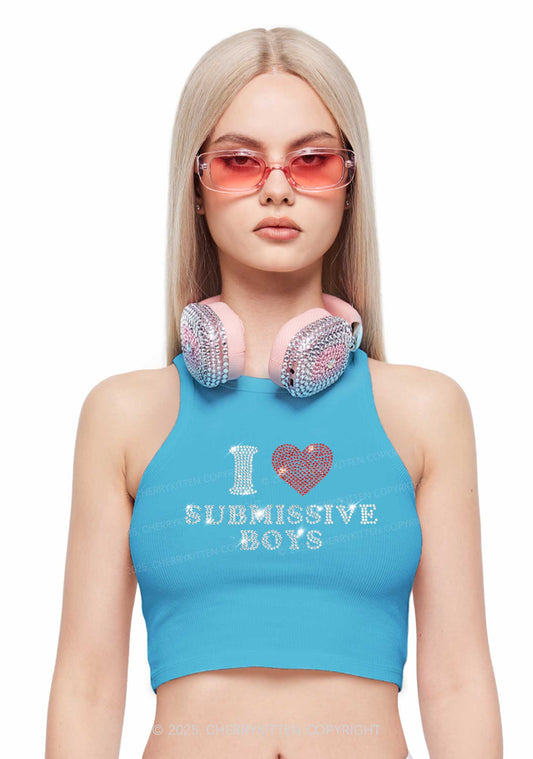 Rhinestone I Love S Boys Y2K Crop Tank Top Cherrykitten
