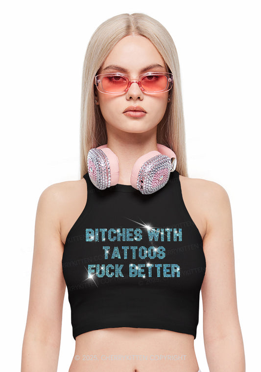 Rhinestone Bxxches With Tattoos Fxxk Better Y2K Crop Tank Top Cherrykitten